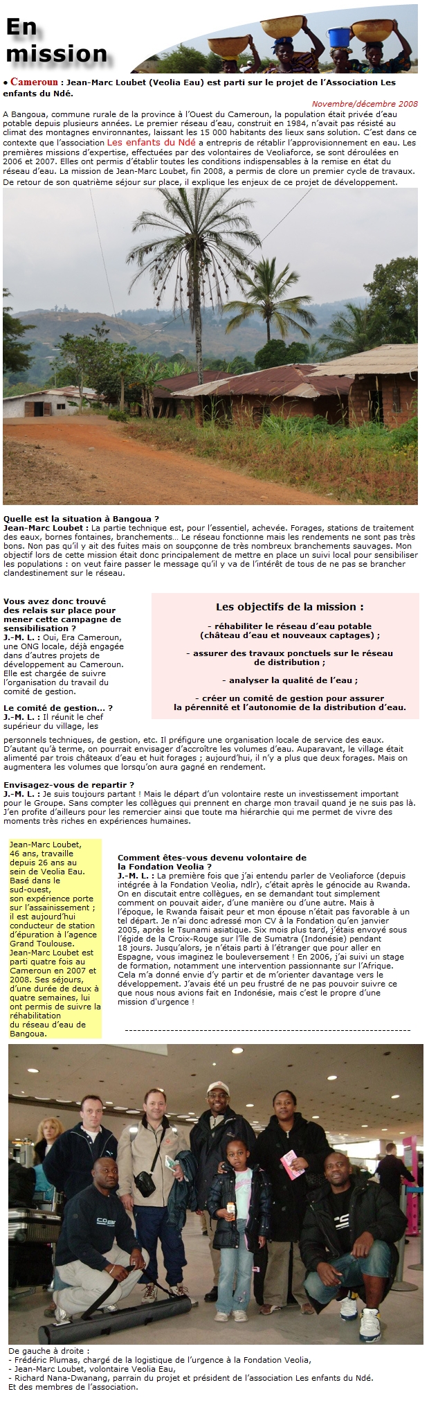 Dans le journal de la fondation Veolia, l’ingénieur Jean-Marc Loubet, est interviewé et fait part de ses impressions.